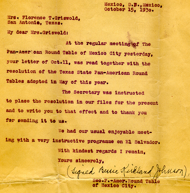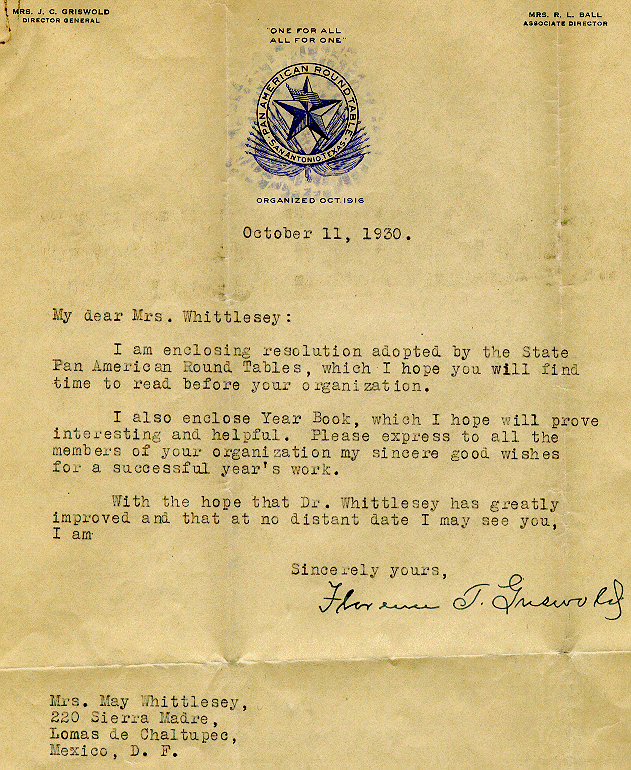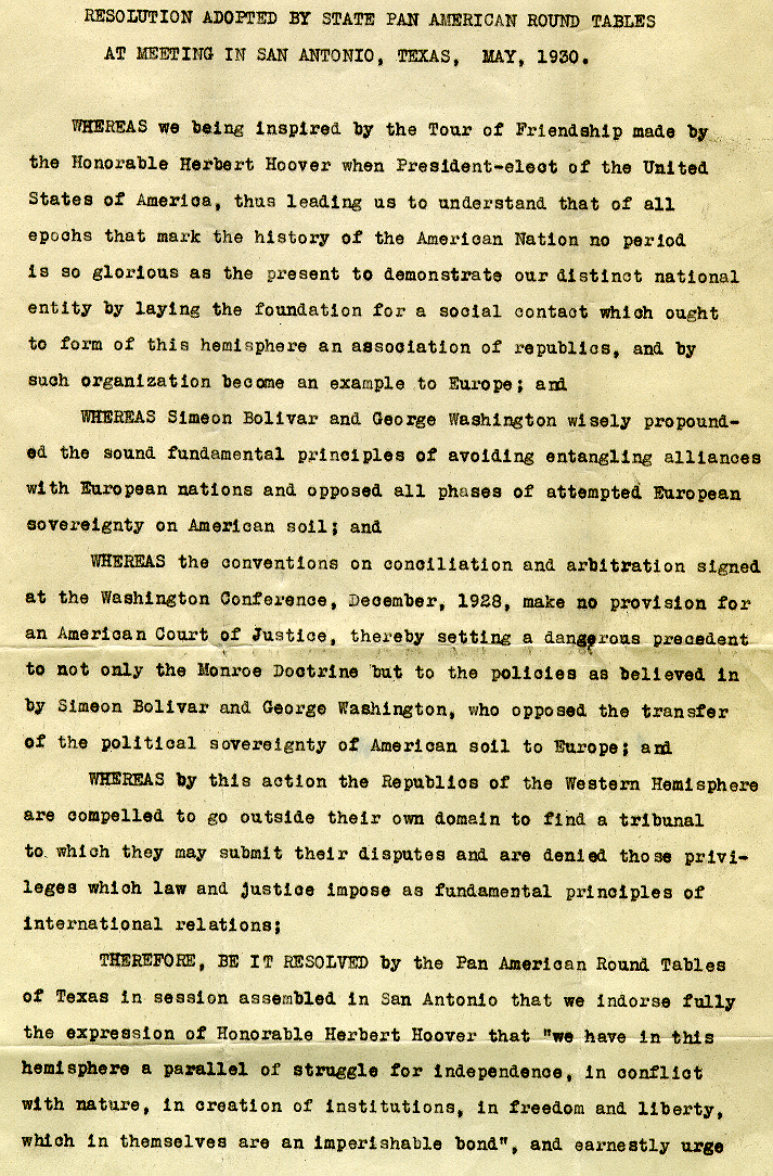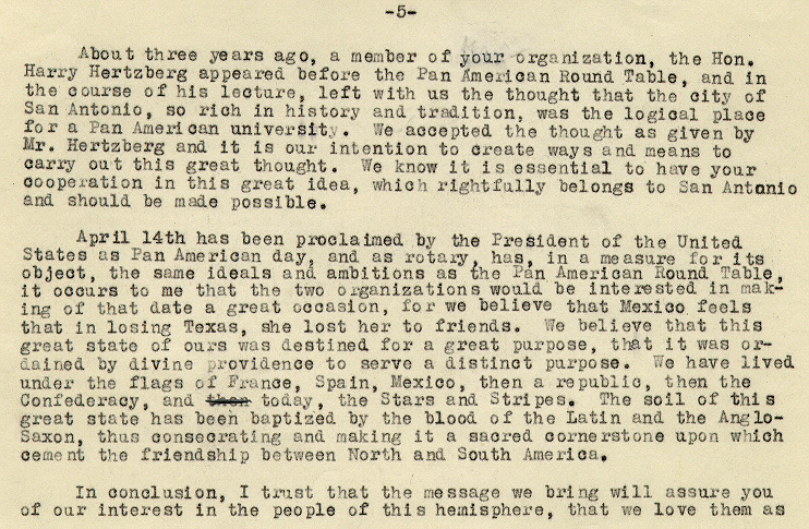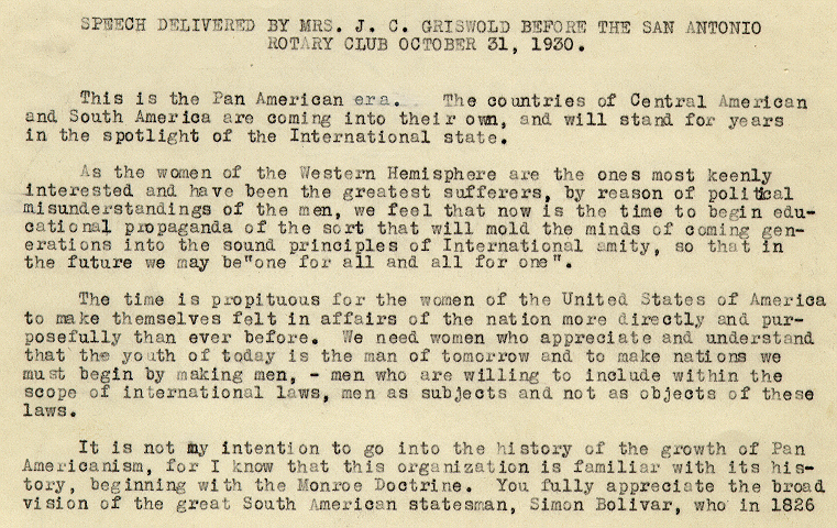 Original Archived Documents 1930 May 1 to December 5 Correspondence; Resolution at State Meeting in San Antonio; FTG Speech to San Antonio Rotary Club October 3, 1930