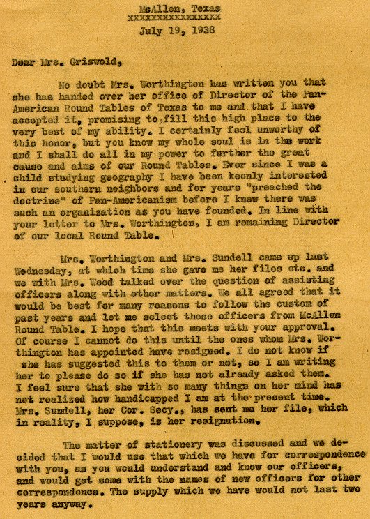 Original Archived Documents 1938 June 5 to August 29 Miscellaneous Correspondence