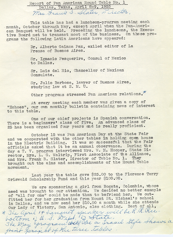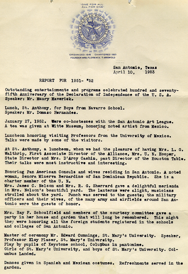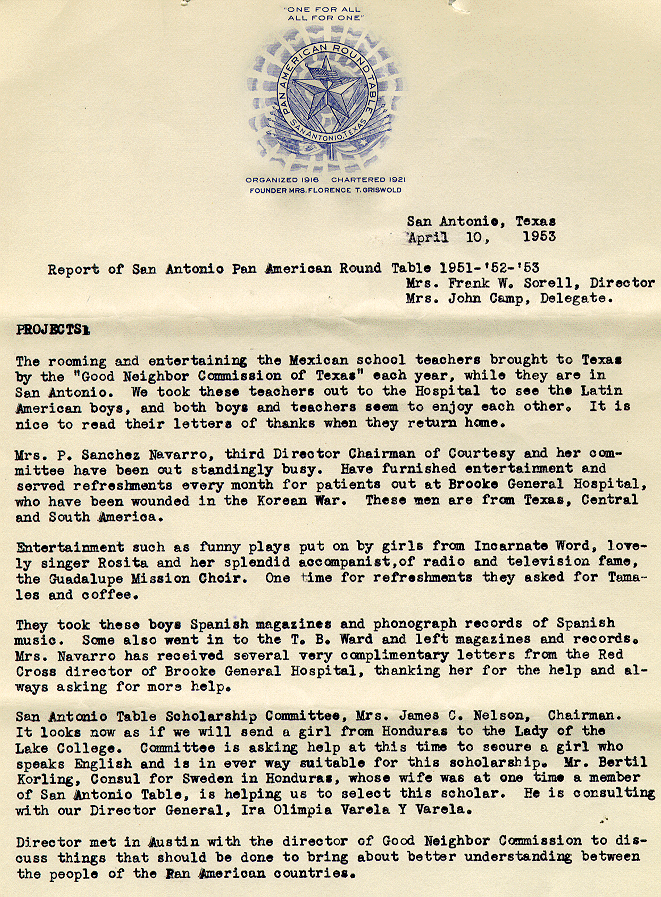 San Antonio Table Report at 26th PARTT Convention, April 8-10, 1953 in Beaumont, Texas