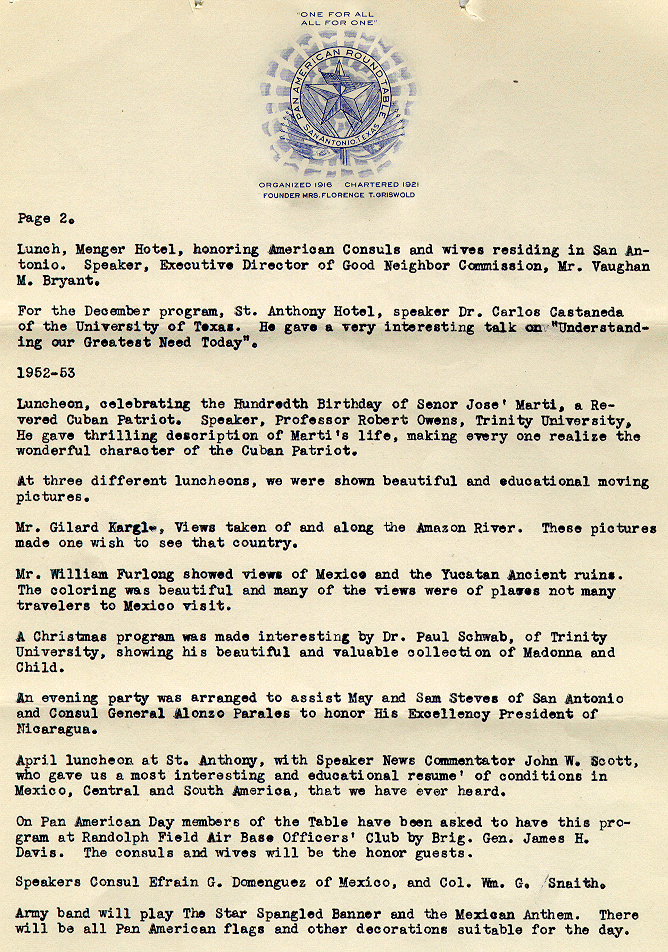 San Antonio Table Report #2 at 26th PARTT Convention, April 8-9, 1953 in Beaumont, Texas