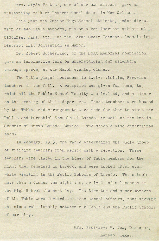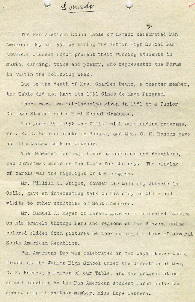 Laredo Table Report at 26th PARTT Convention, April 8-9, 1953 in Beaumont, Texas