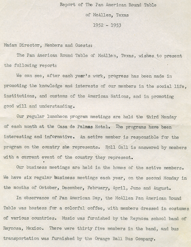 McAllen Table Report 1952-53 at 26th Annual PARTT Convention, April 8, 1953