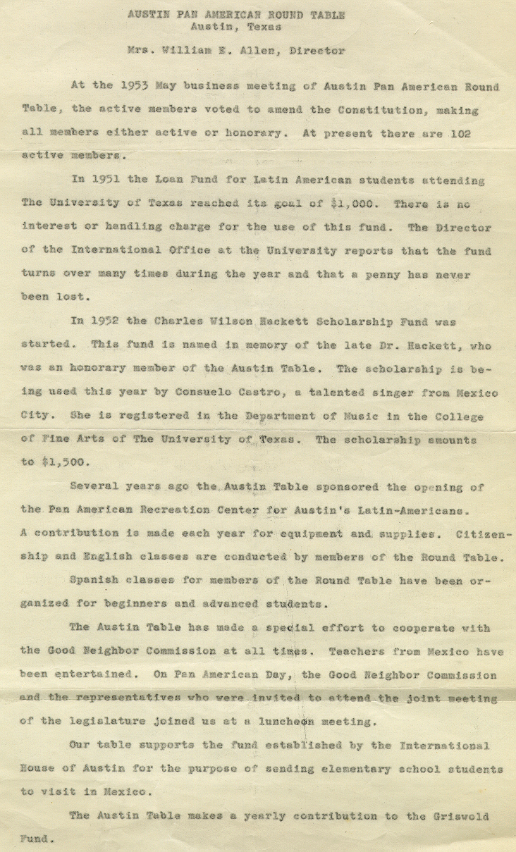 Austin Table Report 1952-53 at 26th Annual PARTT Convention, April 8, 1953 in Beaumont, Texas