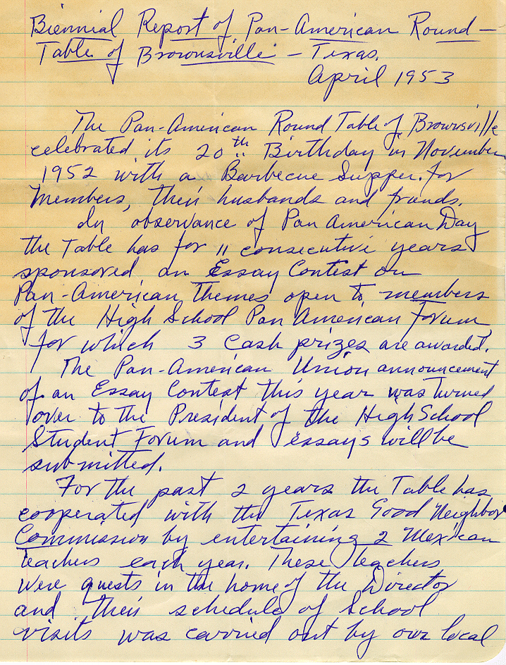 Brownsville Table Report at 26th PARTT Convention, April 8-9, 1953 in Beaumont, Texas