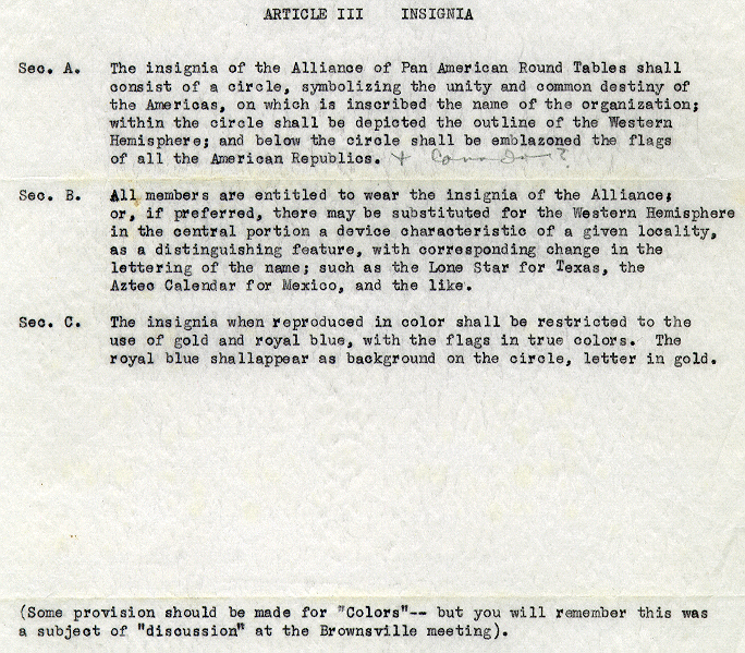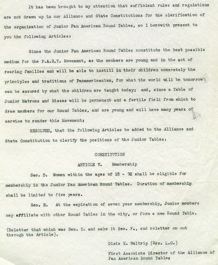 Waltrup suggested Regulations/By-laws for the orginazation of Junior Pan American Round Tables