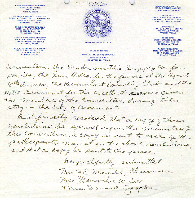 Resolution made at 26th PARTT Convention, April 8-10, 1953 in Beaumont, Texas
